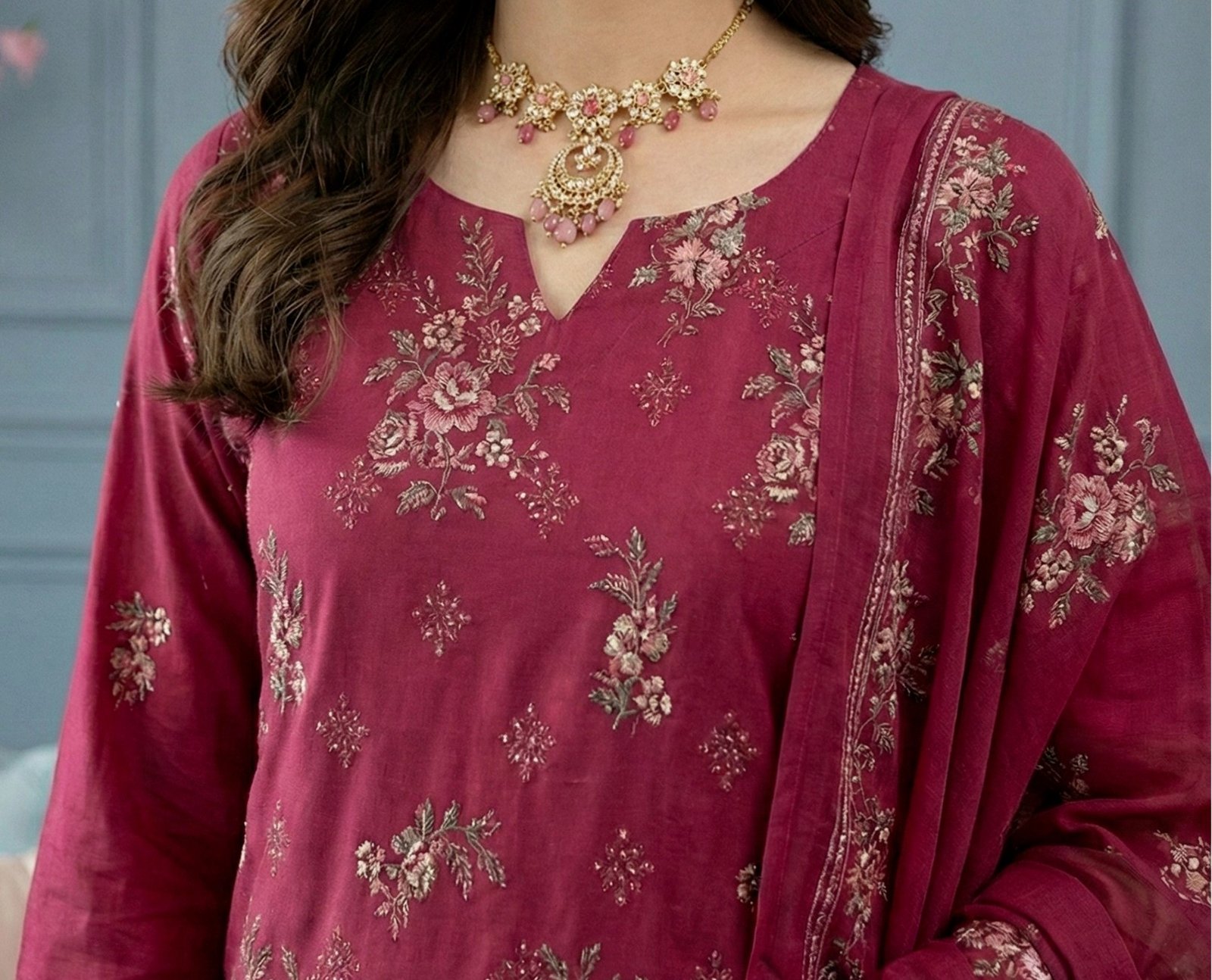 Lawn heavy embroidered D17
